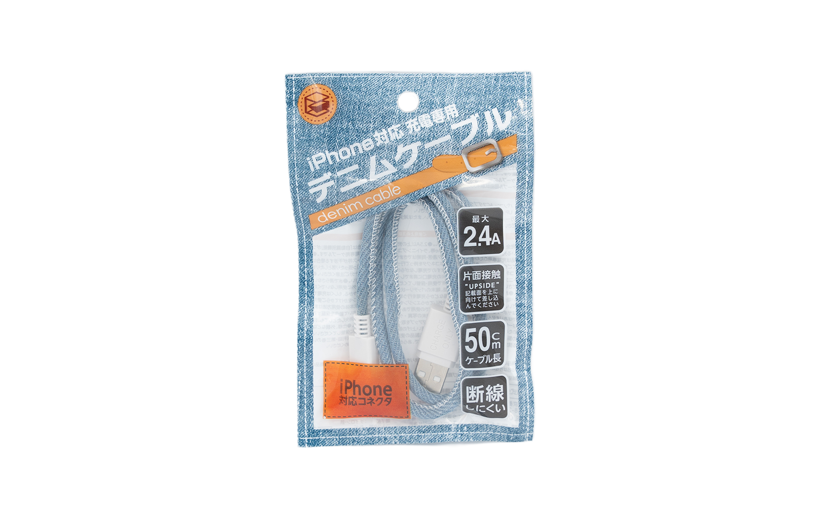 充電専用ケーブル(Type-A-iPhone用、パステルメッシュ、1m、ライトブルー)