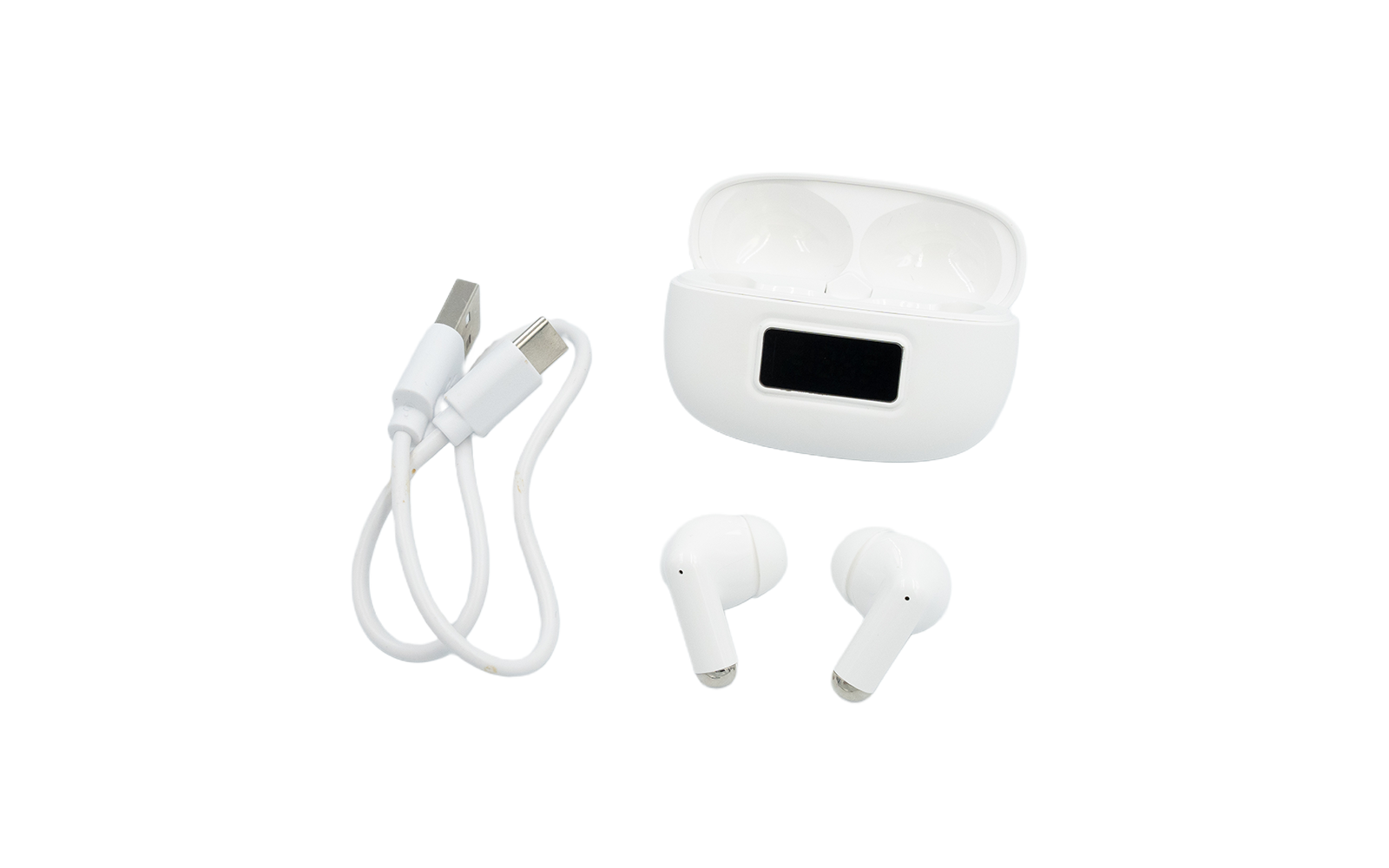 完全ワイヤレスイヤホン LEDディスプレイ 白
