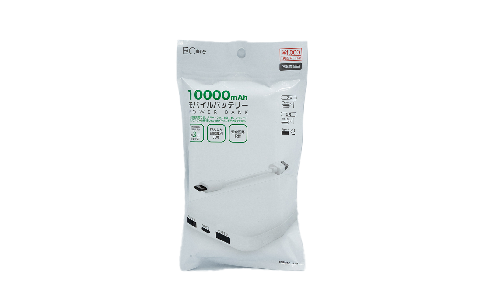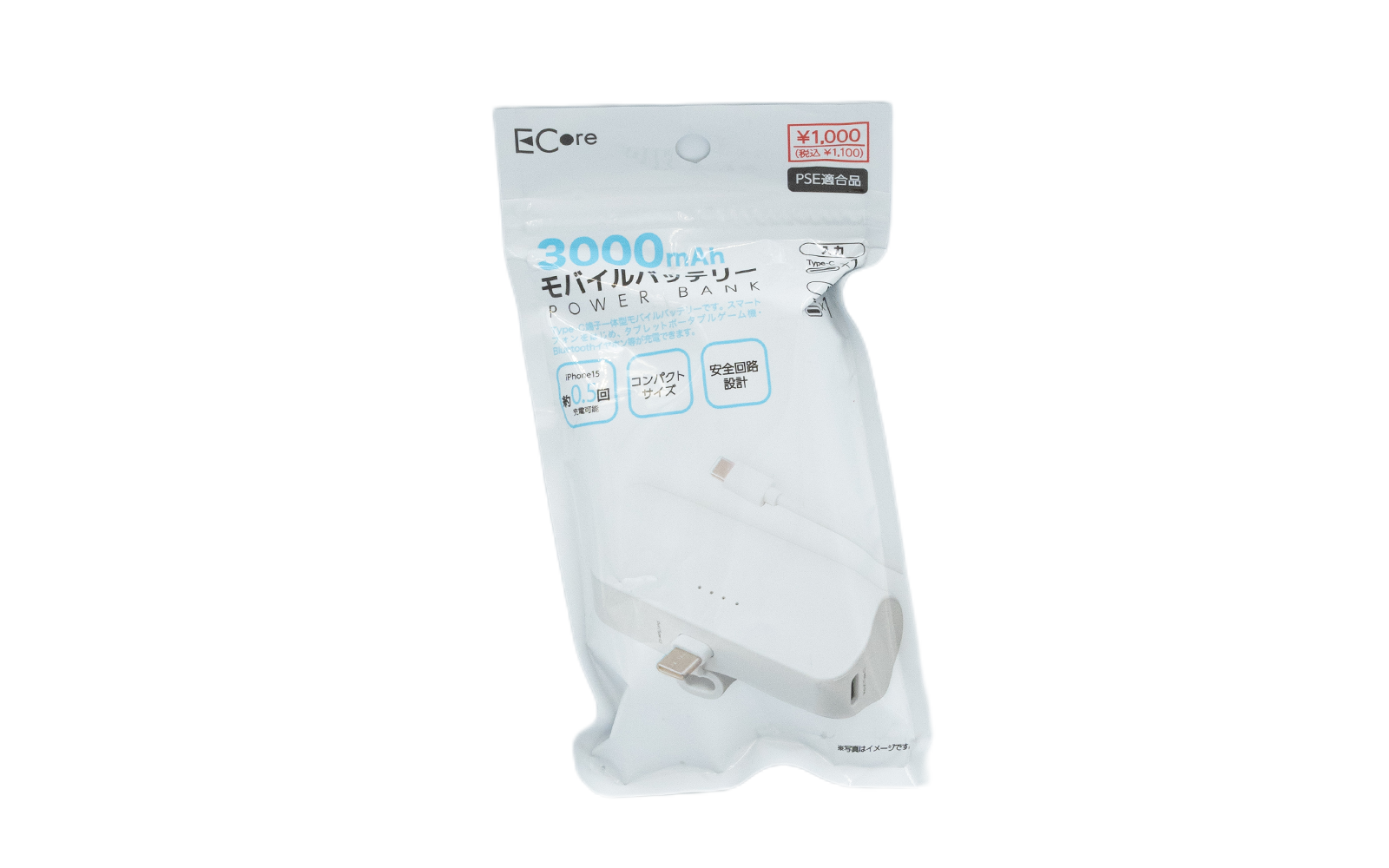 3000mAh モバイルバッテリー小型端子付き Type-C