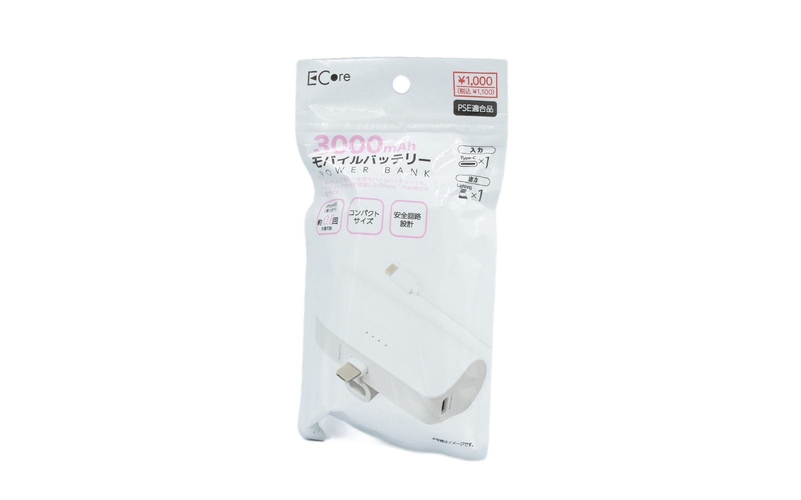 3000mAh モバイルバッテリー小型端子付き ライトニング