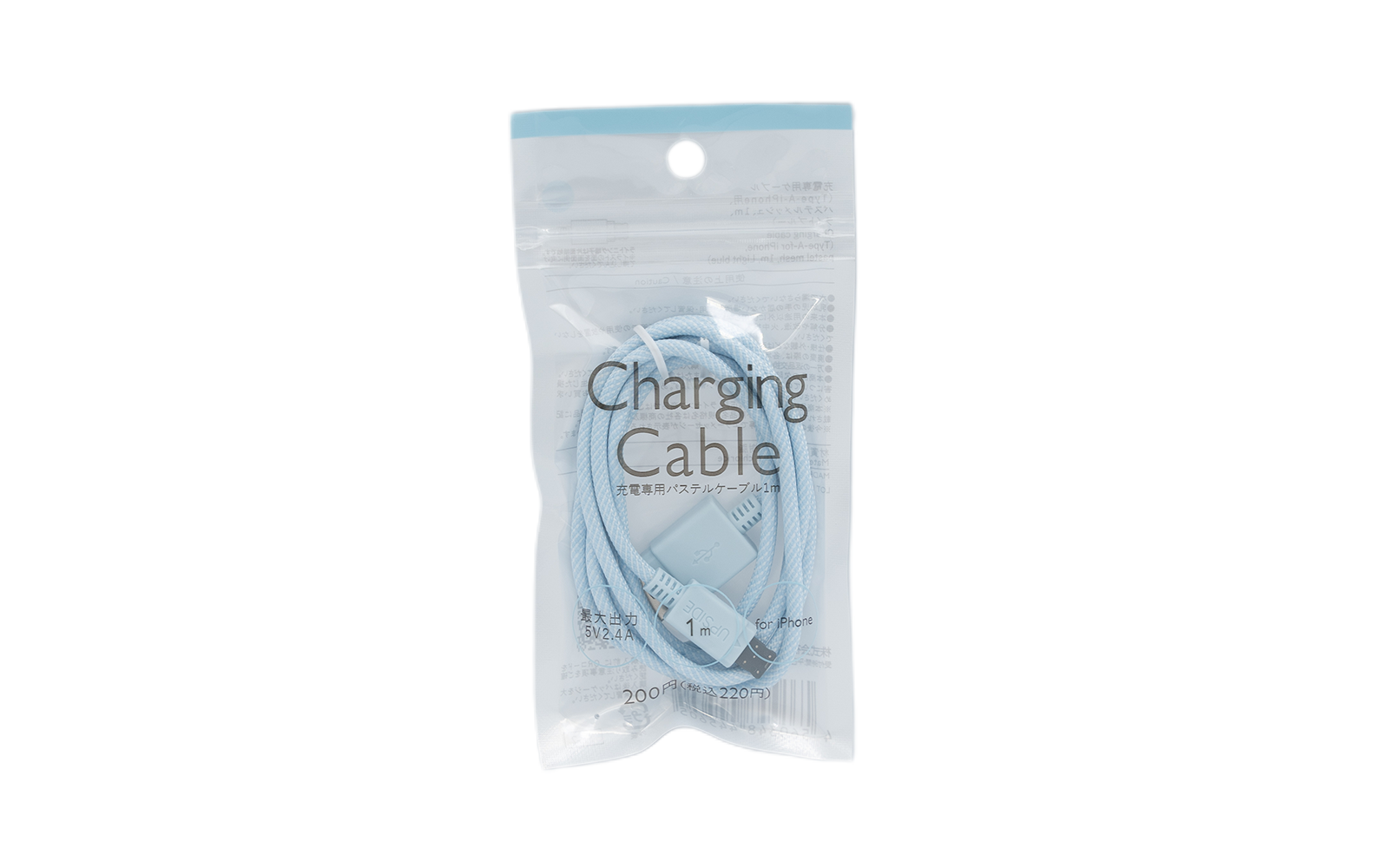 充電専用ケーブル(Type-A-iPhone用、パステルメッシュ、1m、ライトブルー)