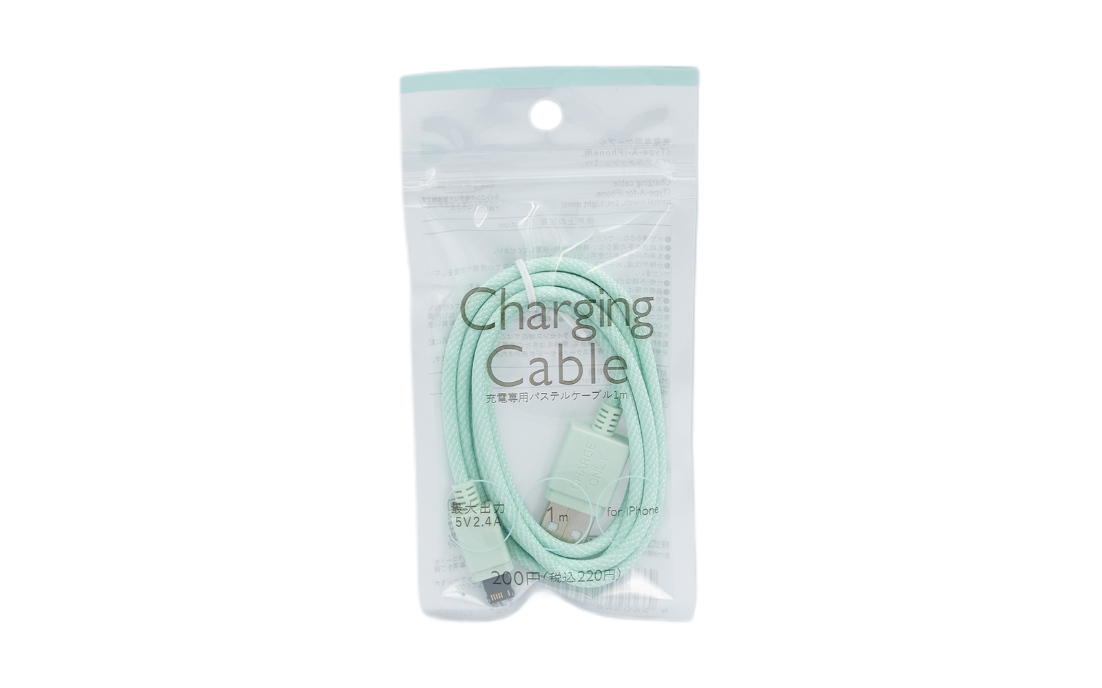 充電専用ケーブル(Type-A-iPhone用、パステルメッシュ、1m、ライトミント)