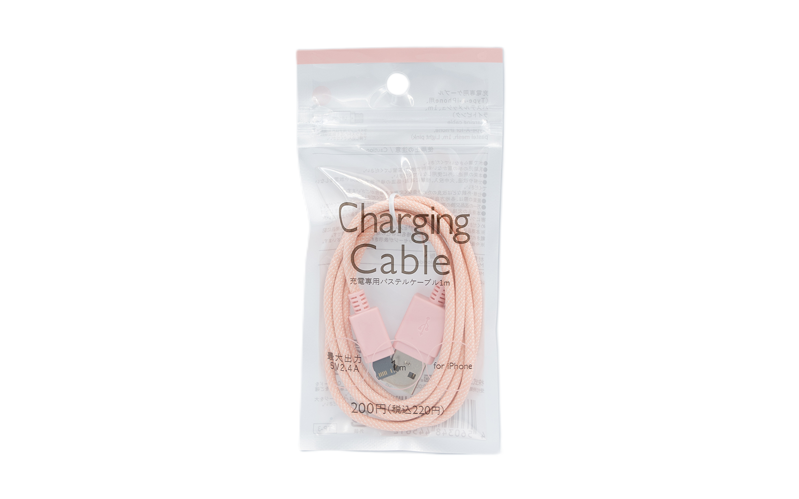 充電専用ケーブル(Type-A-iPhone用、パステルメッシュ、1m、ライトピンク)